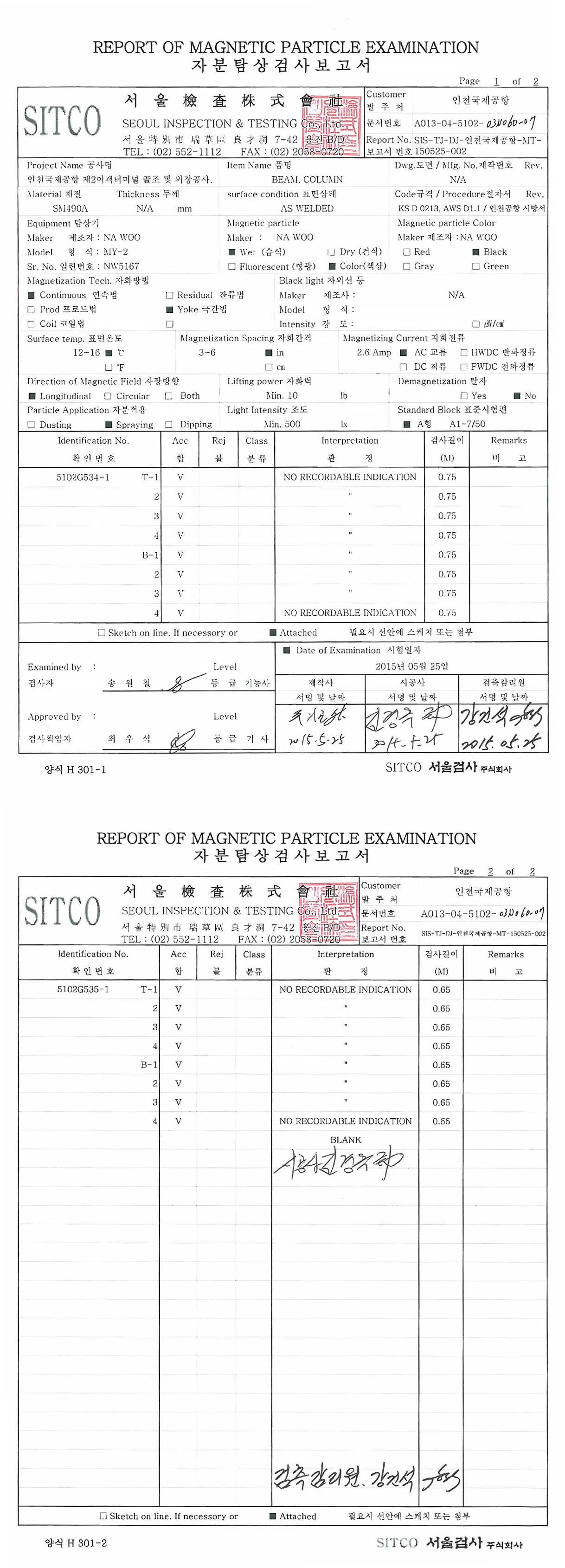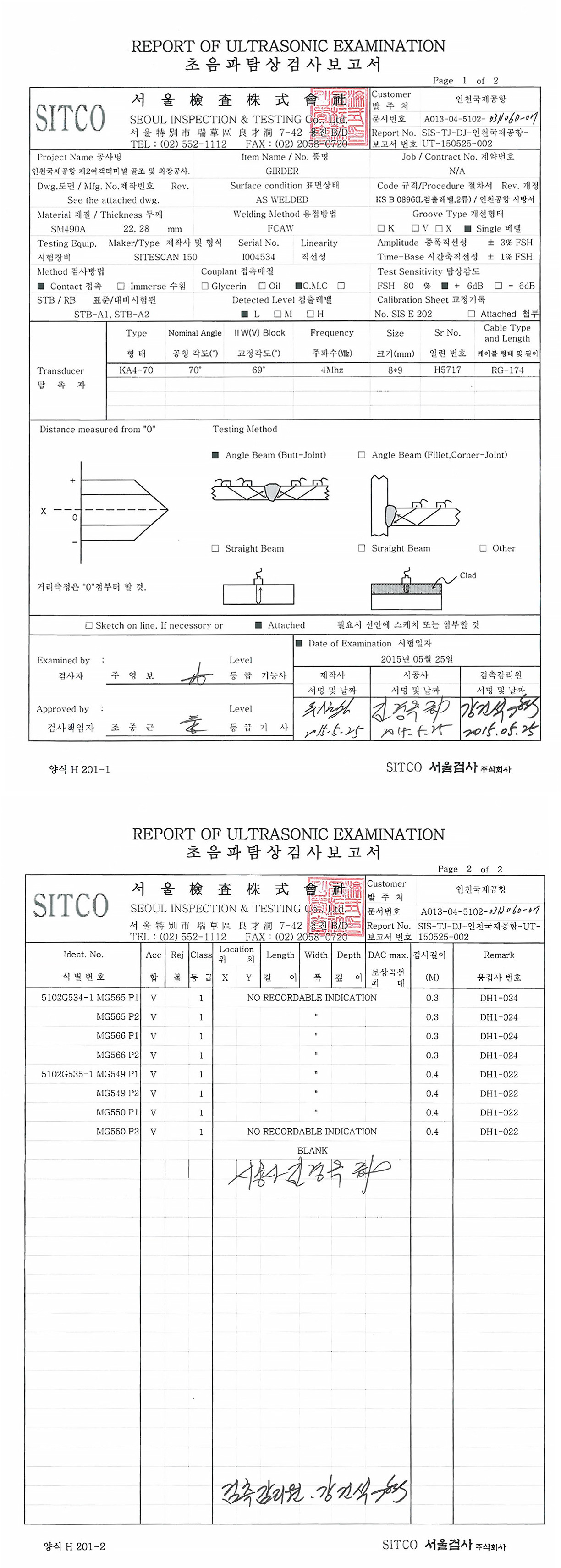※ MT와 UT 검사가 건축 철골 부재에 주로 사용되고 있다. 방사선투과 검사