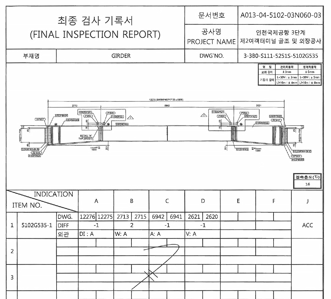 볼트 구멍 치수 및 수량,용접 외부 결함, 변형